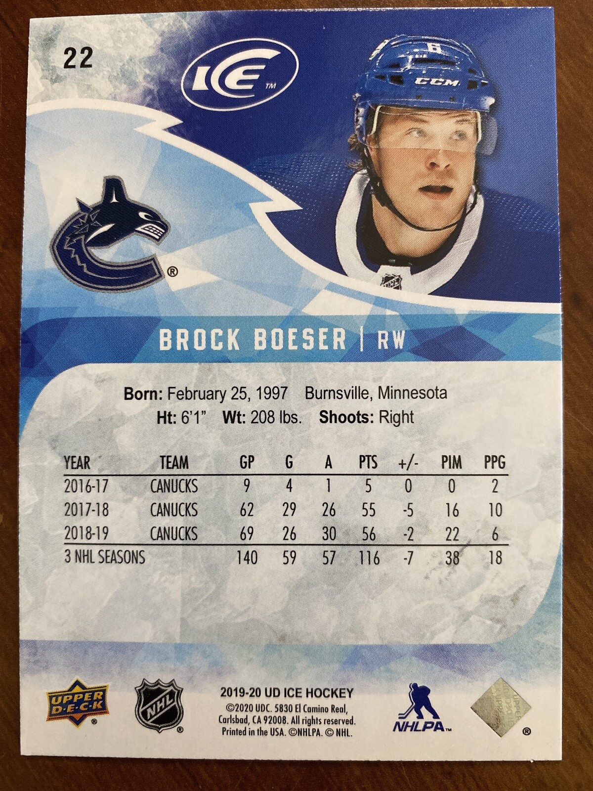 19 20 Ud Ice Hockey 22 Brock Boeser Ebay